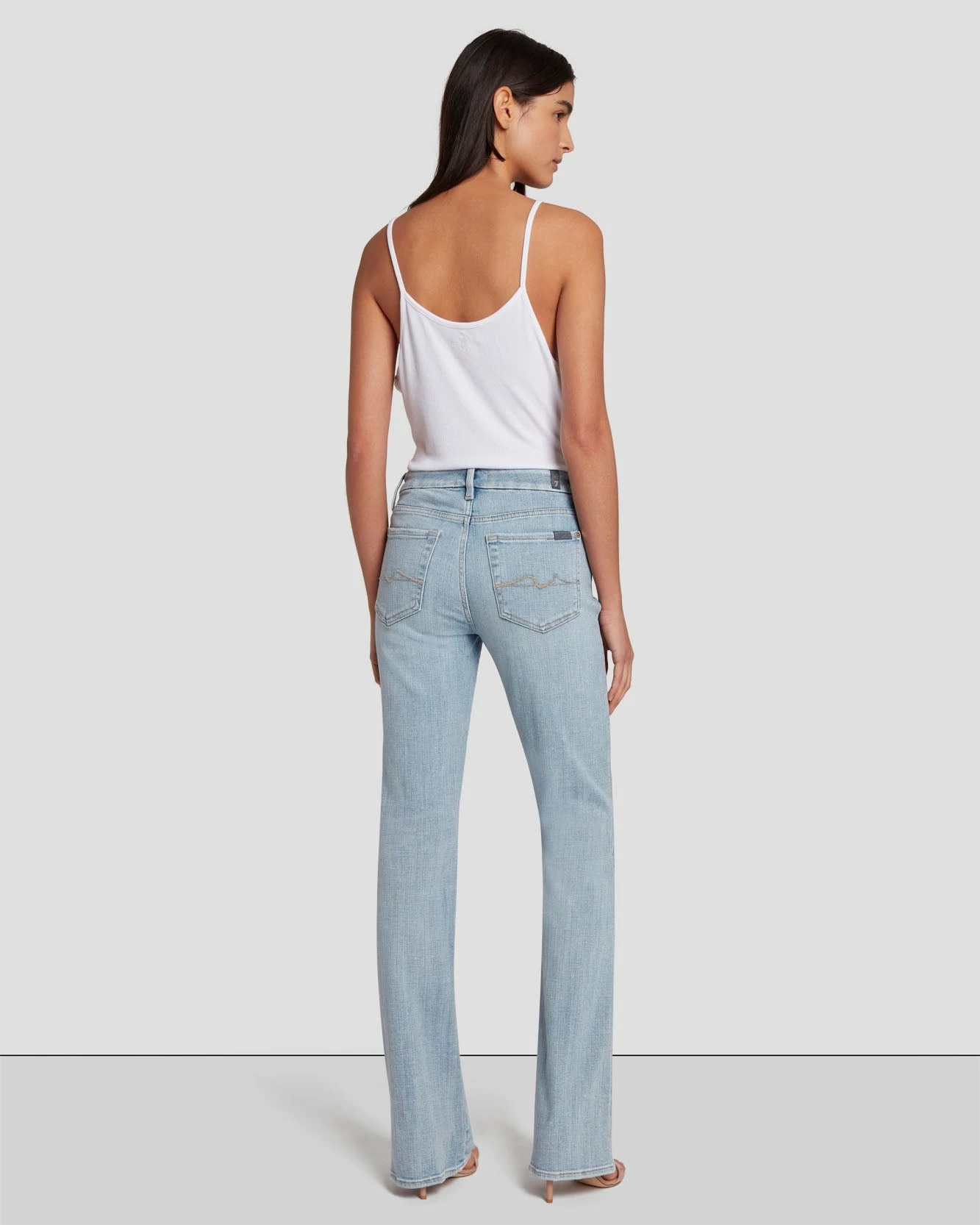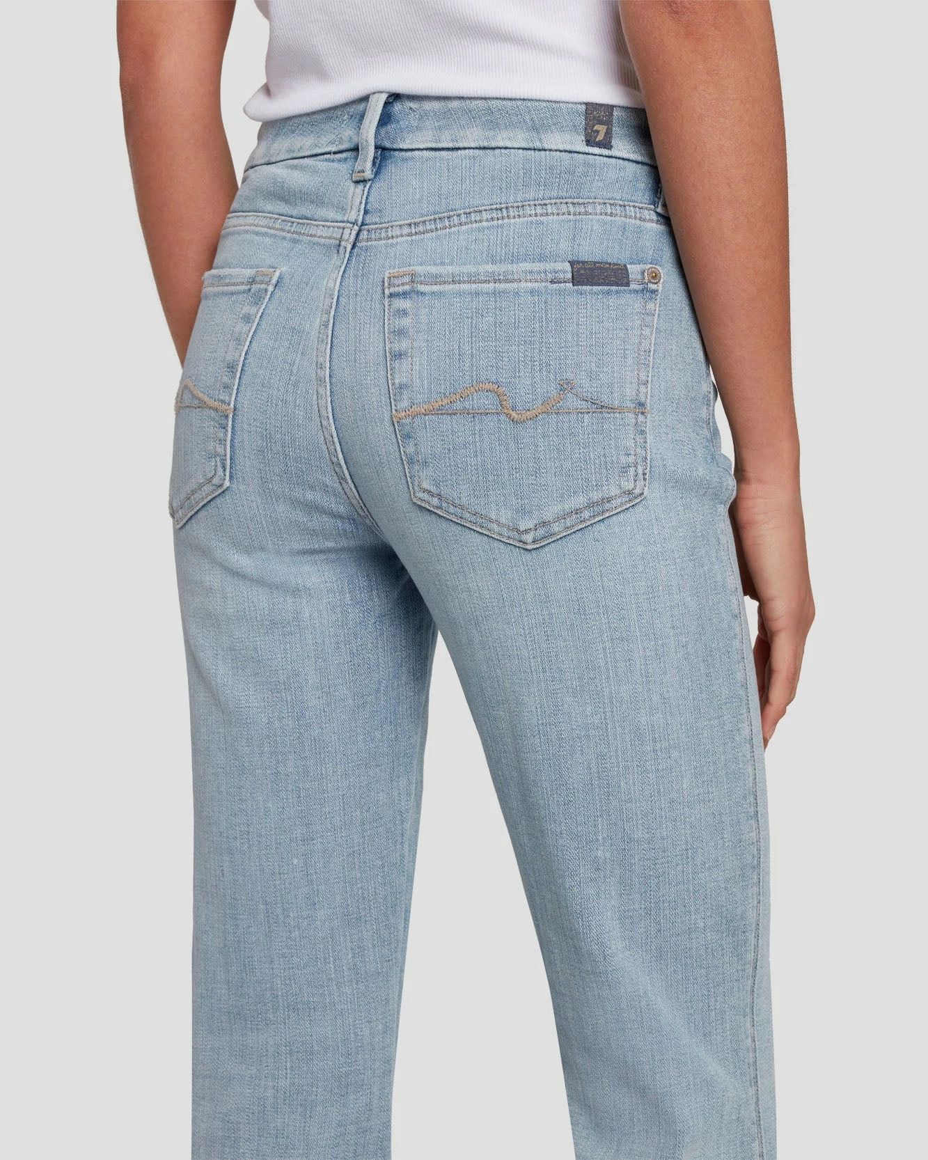 A mid-rise bootcut jean with a contoured waist for a snug fit that subtly flares below the knee. Crafted from our soft broken twill, a medium stretch denim for all-day comfort in a refreshing light wash with added whiskering. This pair of women’s jeans features our iconic squiggle back pocket detail.