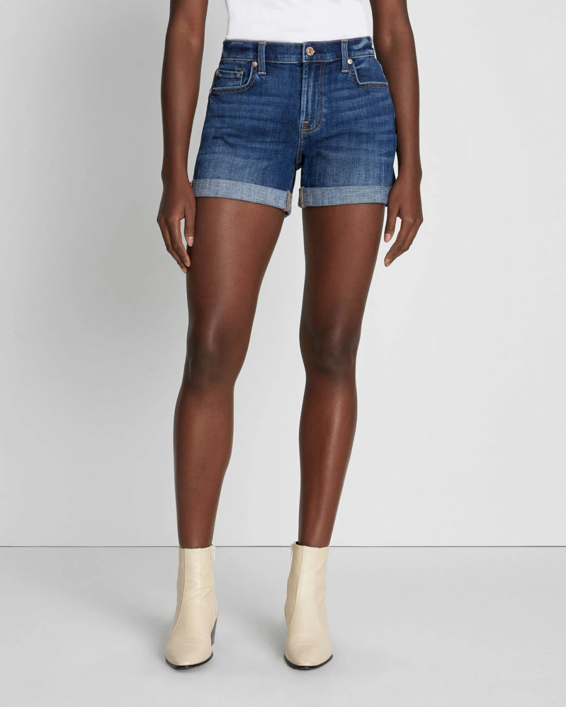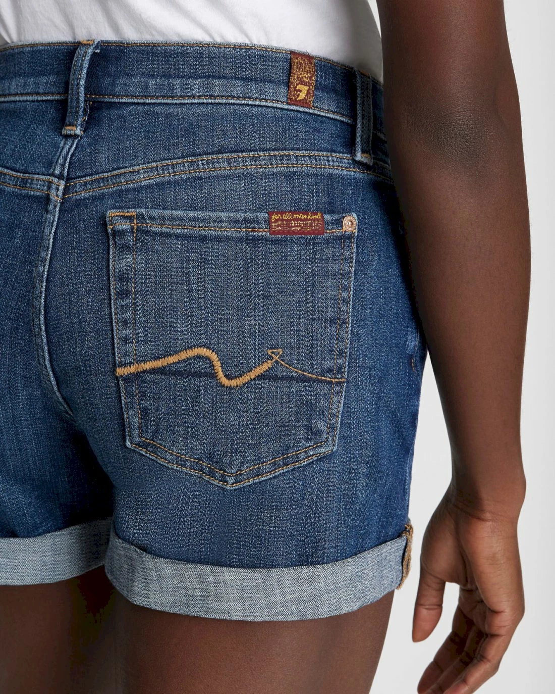 A classic denim short with a mid-rise and a relaxed fit. Crafted from our signature premium denim with stretch in a lightly faded, medium blue wash, this women’s denim short will be the classic addition your closet has always needed. A cuffed hem lends a clean finish and the versatile color makes it the perfect everyday jean short.