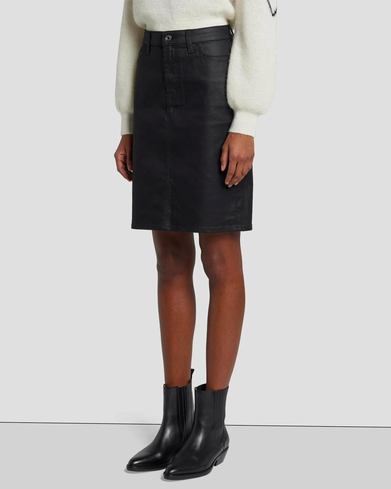 From desk to dinner. This classic pencil skirt is given leather-like edge in a slick, coated denim. Featuring a high waist and back slit, this skirt is crafted from our medium stretch denim for all-day comfort.