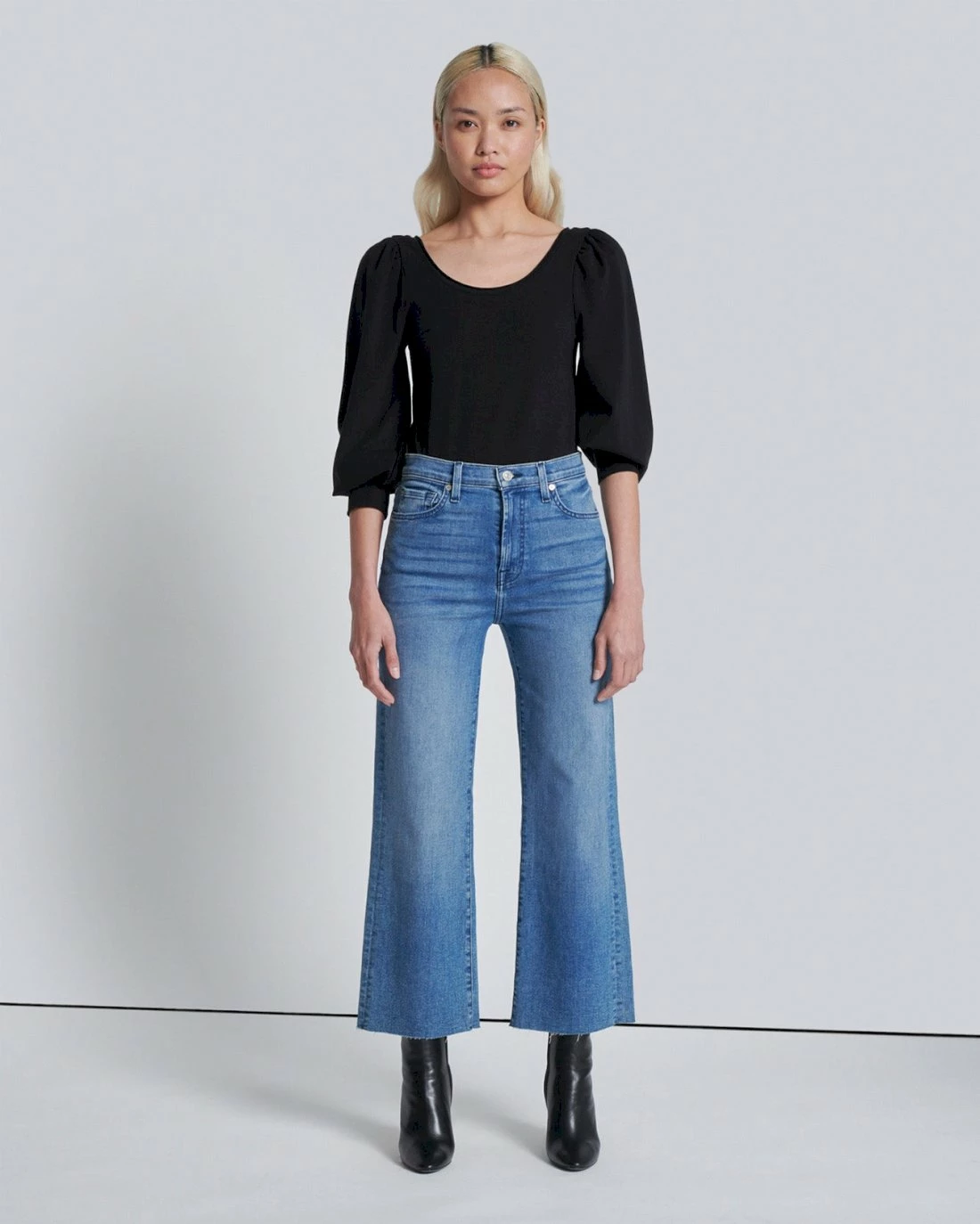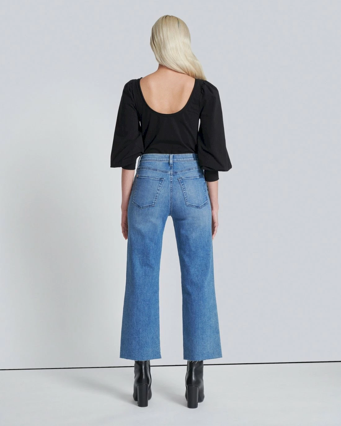 Our cropped wide-leg jeans are crafted from signature premium denim with comfort stretch for all-day wear. A bright, powdery blue wash is marked by whiskering, a subtle fade down the thigh, and a cut hem. Give these an elevated vibe with a puff sleeve top.