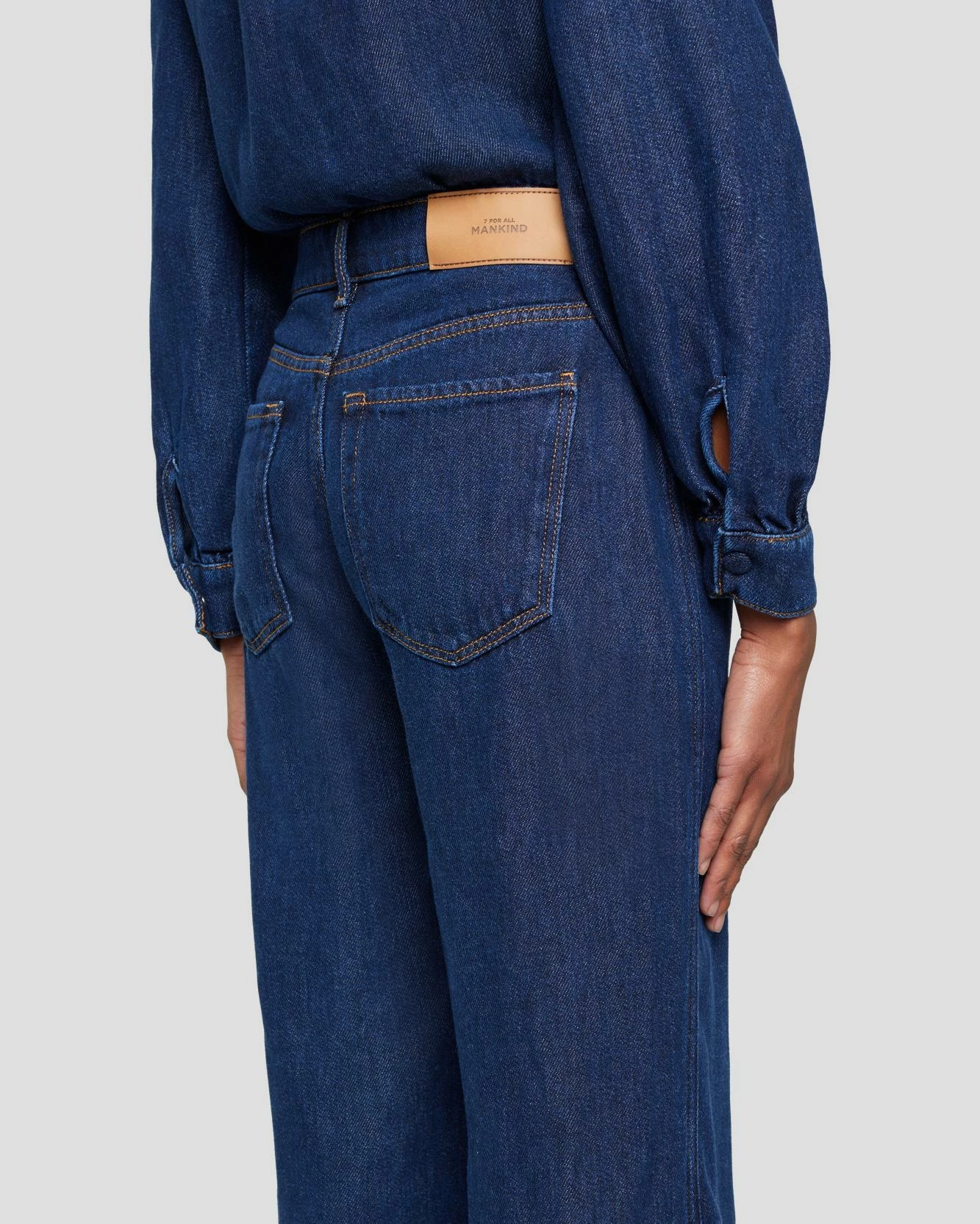 7 For All Mankind Denim Lustre Tailored Wide Leg Jumpsuit In Dark Rinse