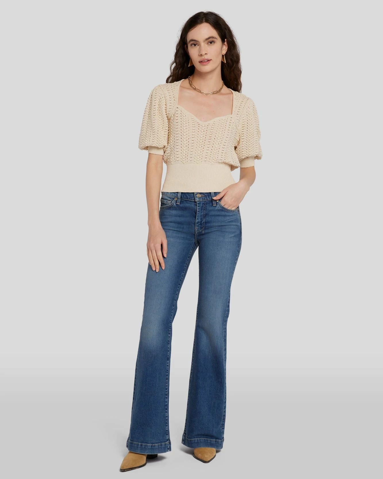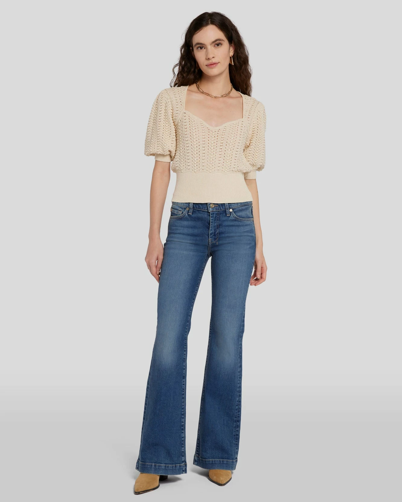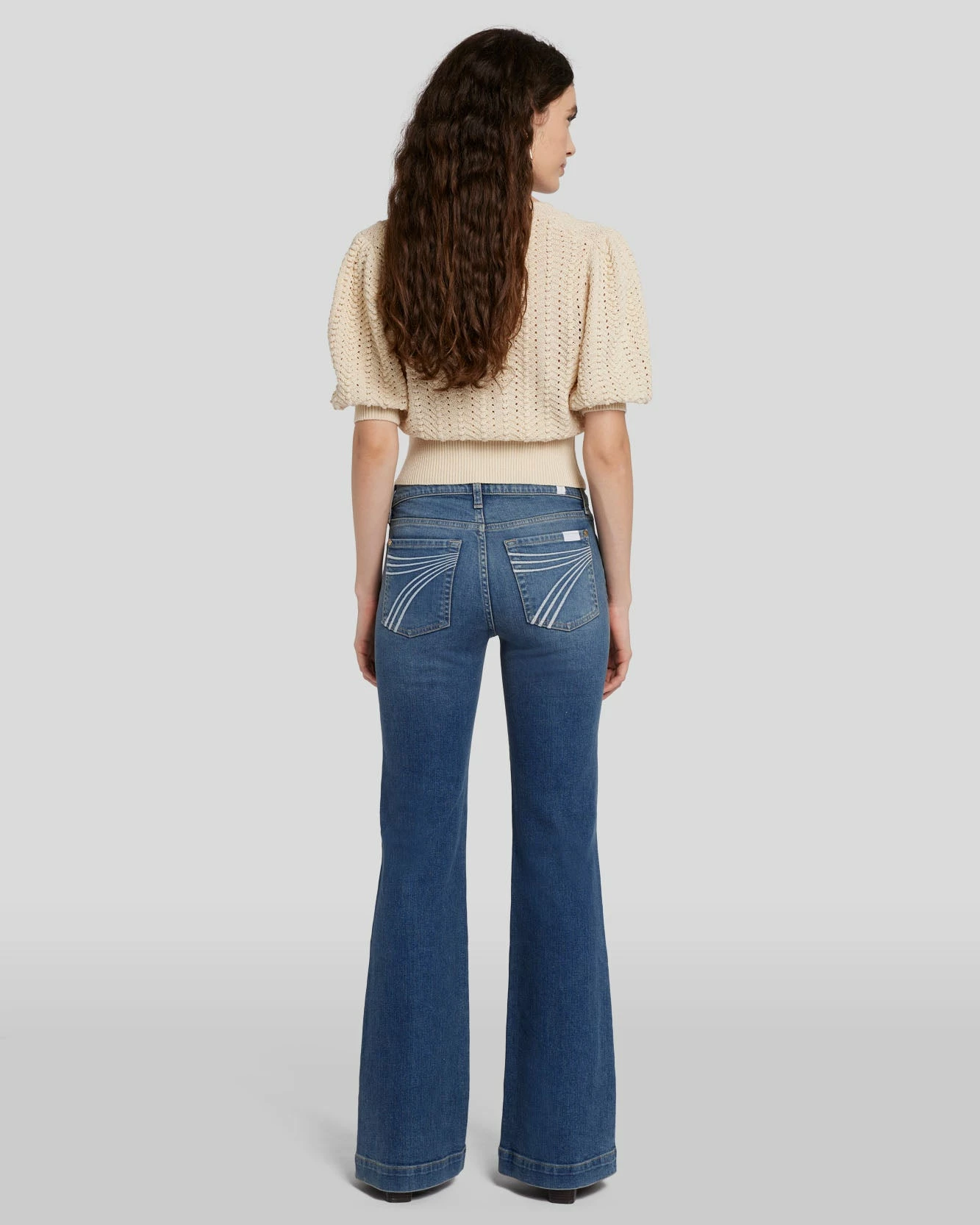 The ever-popular Dojo. Coming in a brand new medium-blue wash complete with our signature 7 embroidered back pockets, this pair of women’s denim features versatility and comfort for any moment. These are the jeans you’ll be pairing with everything in your closet.