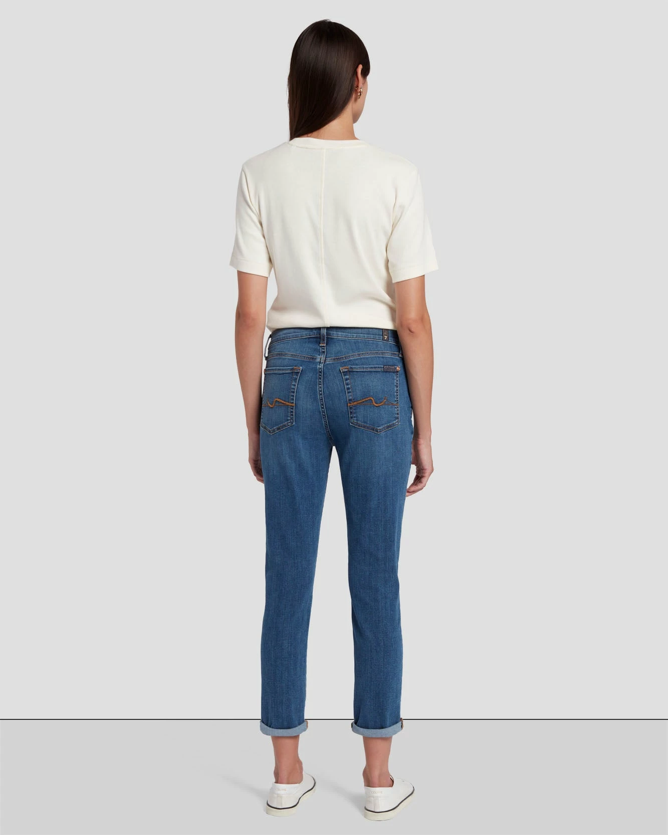 A more feminine take on the boyfriend jean. Featuring a narrower, slimmed-down fit, this pair of denim is cut from our signature, comfort stretch denim and comes in a classic, medium-blue wash, Meisa. Pairs well with heels and a blazer for a casually elegant finish.