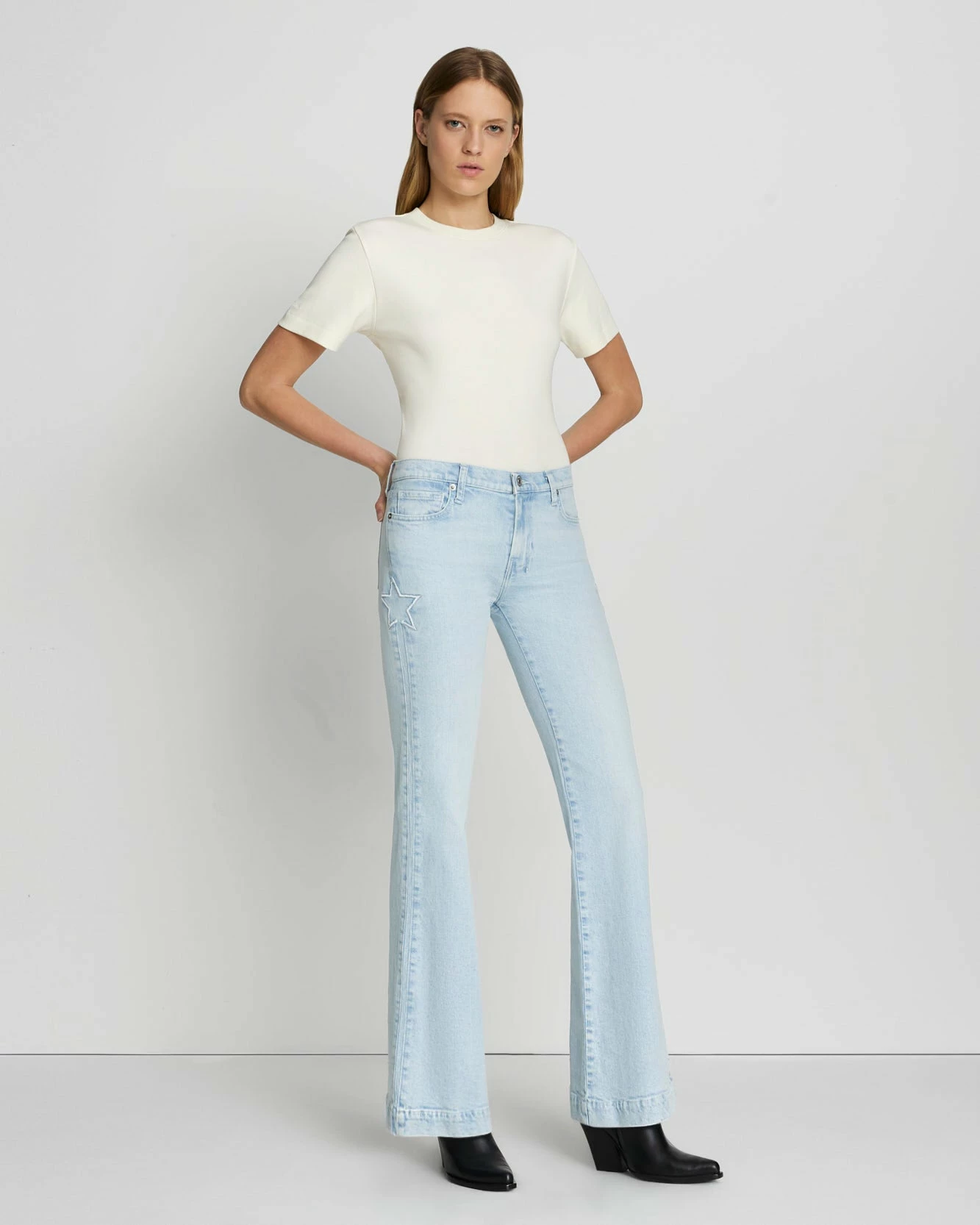 Crafted in our signature Luxe Vintage stretch denim for that lived-in feel, our beloved trouser jean finds a hint of edge with a star detail at the seam. Offered in a light blue wash, they are the perfect pair of denim to elevate any look this season.