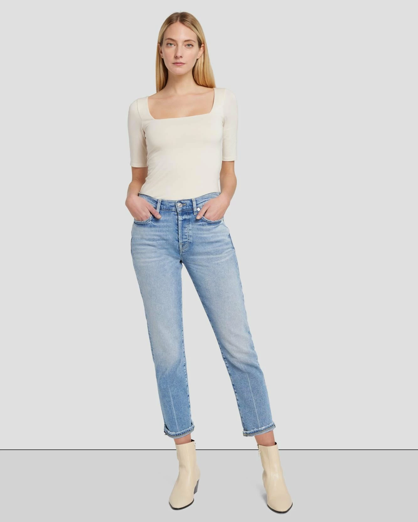 Luxe fabric. Vintage vibes. This slimmed down boyfriend silhouette comes in a gently faded, medium blue wash. Cut from our signature Luxe Vintage denim, which combines a vintage look with the perfect amount of stretch.