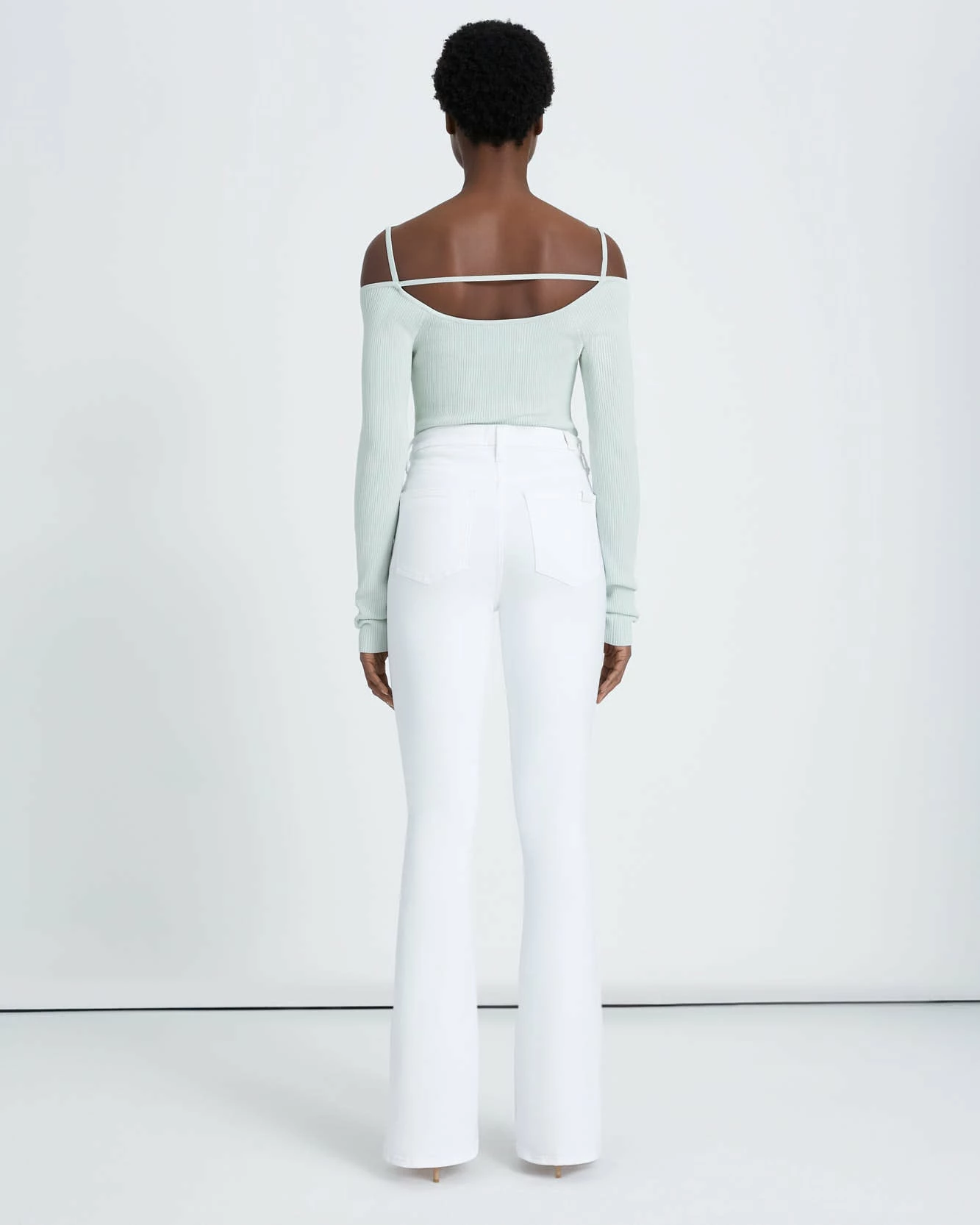 A modern take on the bootcut, this skinny version is slim through the thigh and flared at the hem. Made from our No Filter denim offering extra stretch, shape, and softness inspiring your most confident look yet, no filter required. The ultra high-rise waist and fresh, white wash will elevate any look.