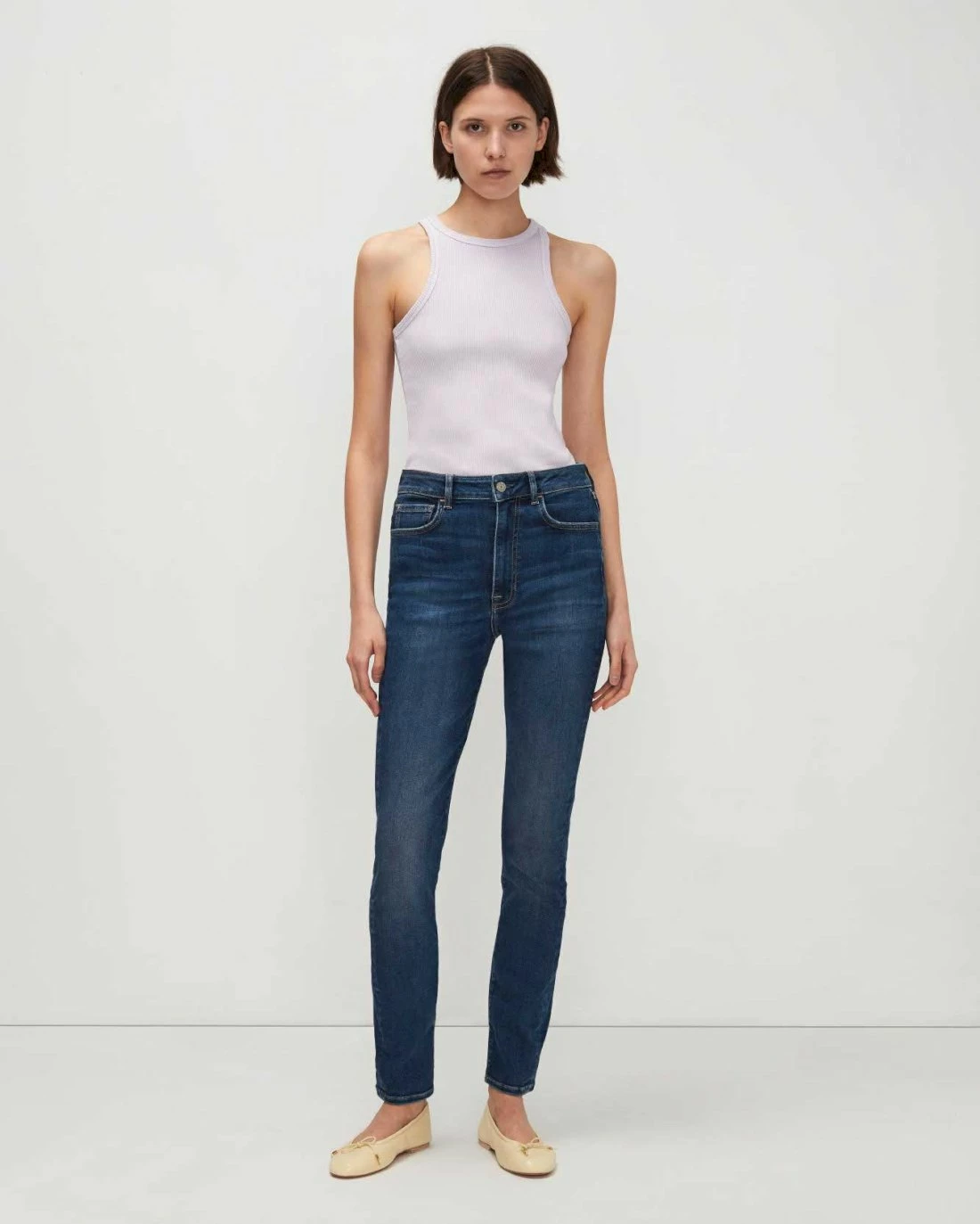 Introducing No Filter Denim by 7 For All Mankind, offering triple the stretch, sculpt, and softness with sustainable properties, inspiring your most confident look yet, no filter required. This ultra high rise skinny, in a deep blue wash, is marked by faint whiskering and subtle fading down the thigh. We love these with our Peter Pan Collar top for a flirty finish.