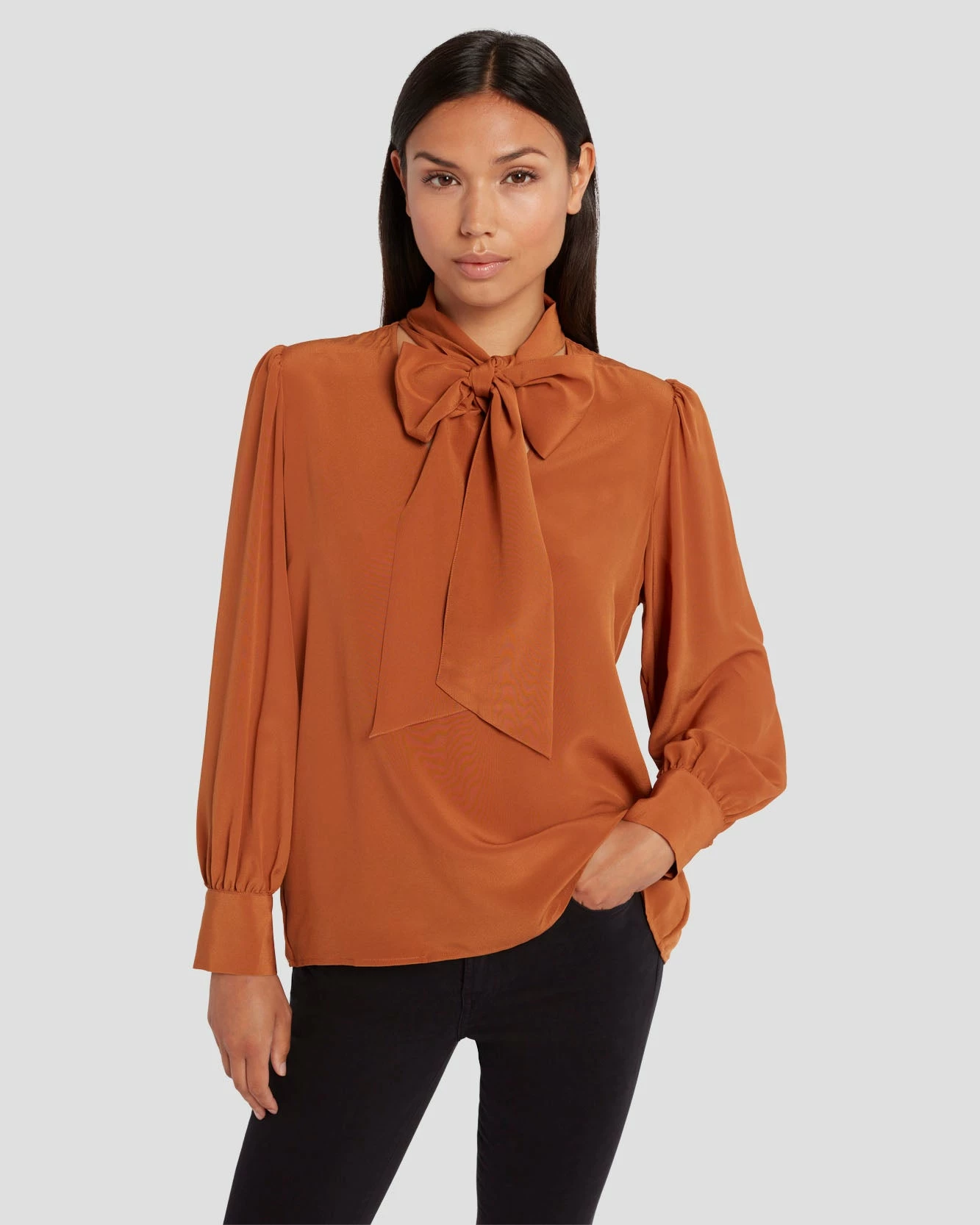 Be the first to review “7 For All Mankind Silk Tie Neck Blouse In Ginger” Cancel reply