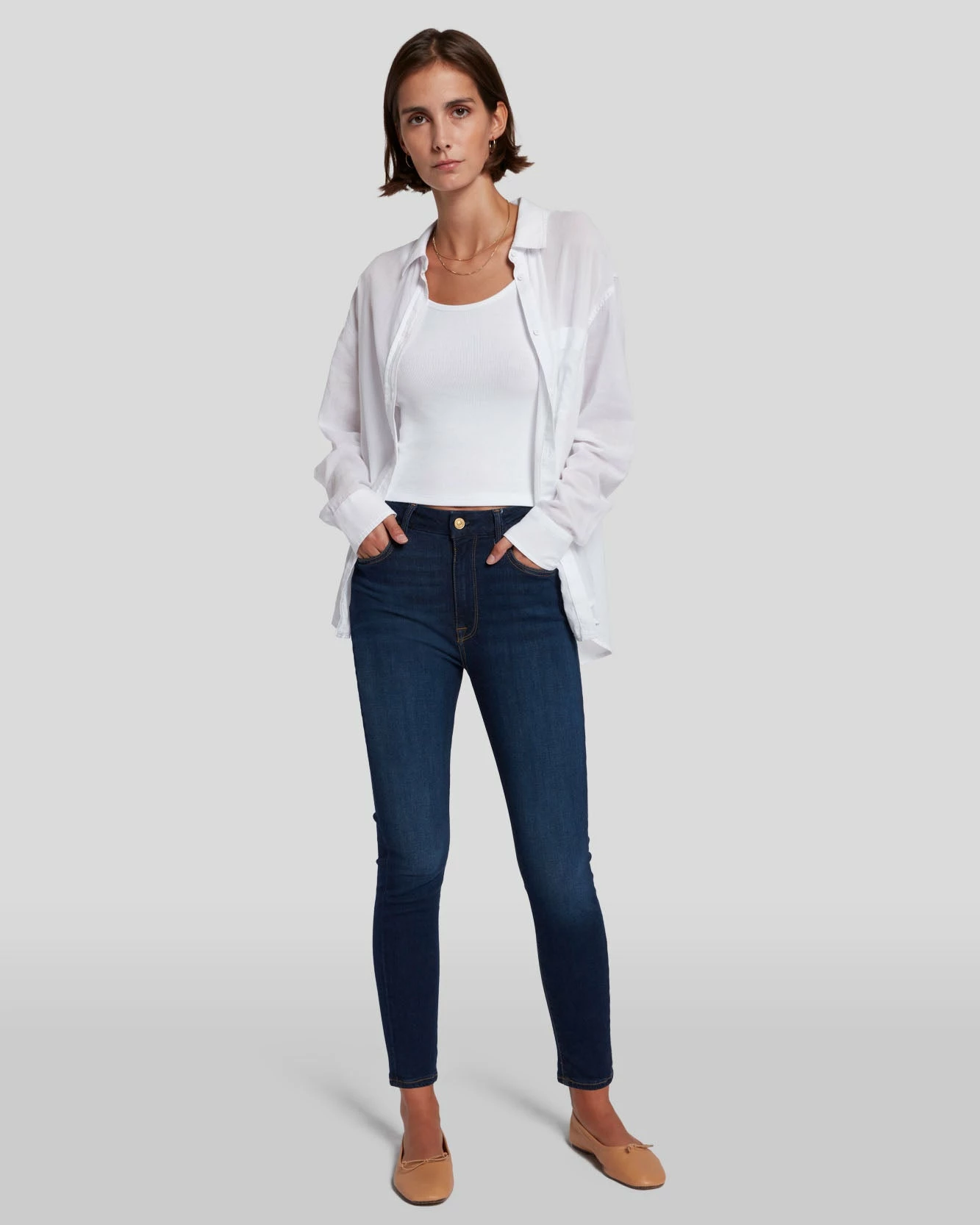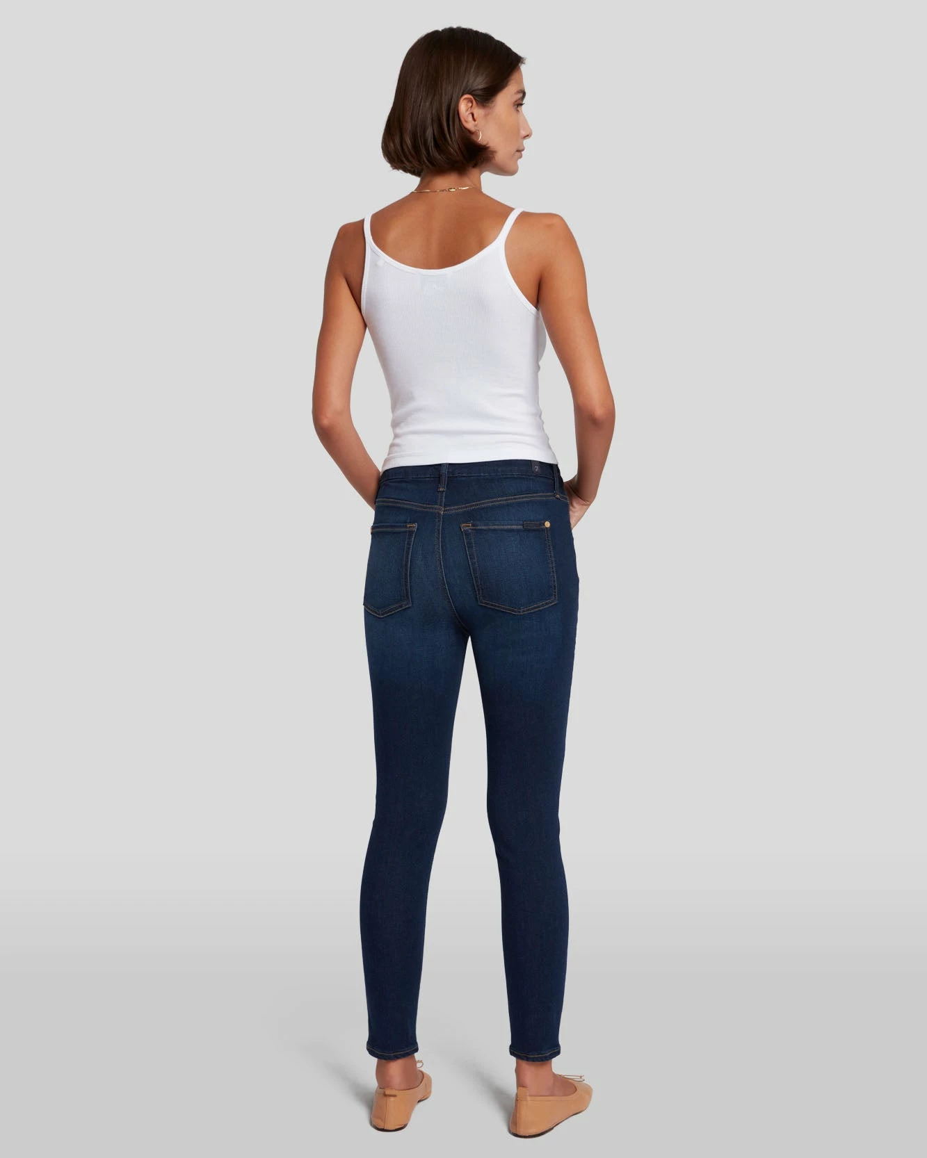 We are pleased to now offer extended sizing options in 23 through 34. High Rise, Skinny From Hip to Hem, Cropped Length.