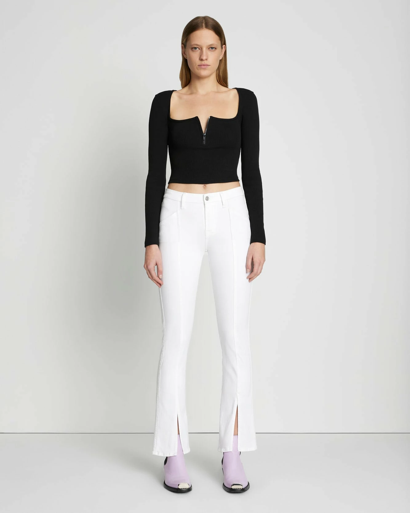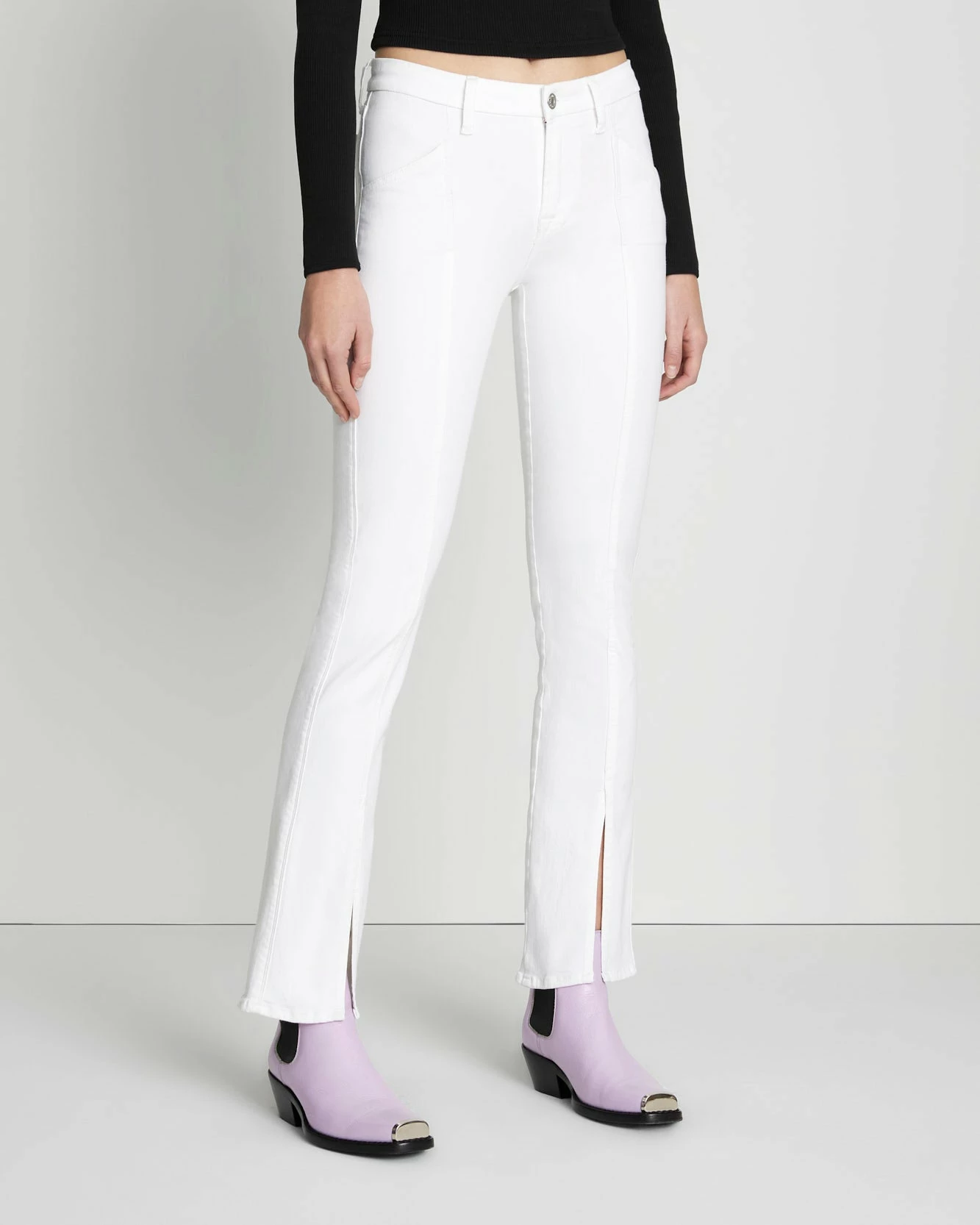 Fashion-forward front split hems and seaming add a seasonal update to our classic, mid-rise, straight-leg jeans. Crafted with our Slim Illusion denim that shapes and sculpts to create a refined shape, these are a pair of women’s denim that has a contoured waist that provides a snug fit and a versatile silhouette.