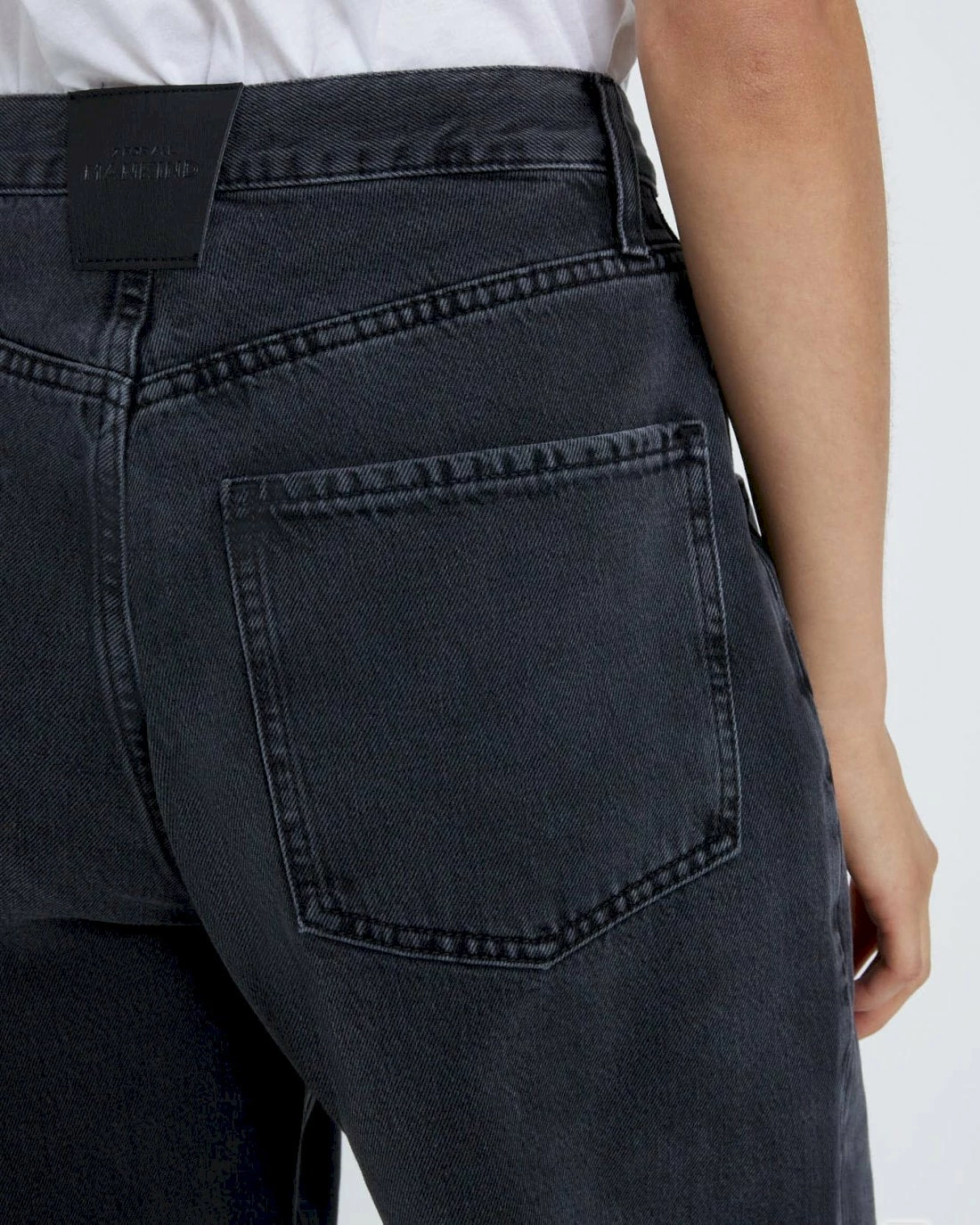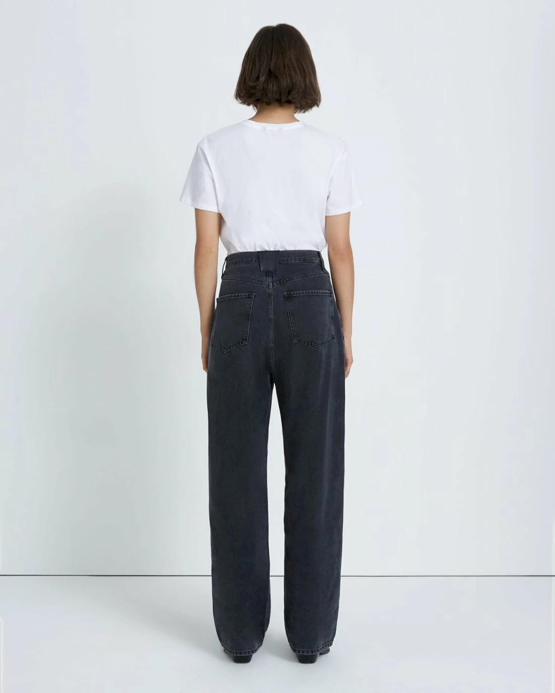 A 90s flashback made modern. These jeans are all attitude, with a pinched high waist, baggy legs, exaggerated pockets, and a subtly tapered hem. Crafted from super soft rigid denim in a worn black wash they’ll add ease to anything. Play with proportions and style with a cropped knit to showcase the floral embellishment at the waist.