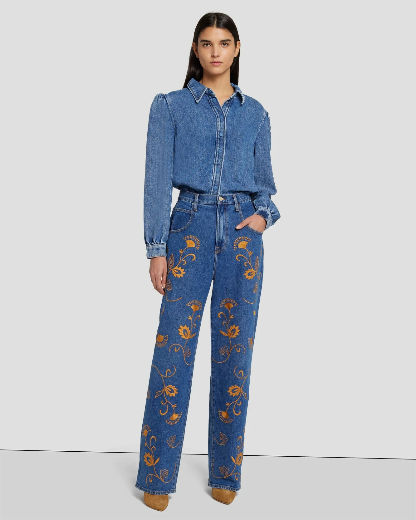An updated take on a classic retro silhouette. Our 90s Baggy Jean is a part of the free-spirited MANKIND collection, and features a high rise waist that gives way to roomy, subtly tapered legs. Crafted in a sturdy, structured denim, this medium blue wash is finished with light fading for that broken-in look.